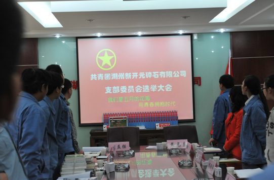 2014年4月4日,共青團(tuán)湖州新開(kāi)元碎石有限公司支部委員會(huì)選舉大會(huì)于13:30在公司大會(huì)議室召開(kāi)。上海材料公司團(tuán)支部書記劉益強(qiáng)、副書記周旻,公司總經(jīng)理姚紹武、工會(huì)主席戴光良、委員蔡群榮、李永亮以及公司全體團(tuán)員和部分青年代表參加了本次會(huì)議。此次選舉大會(huì)由工會(huì)主席戴光良、總監(jiān)票人陳大民共同主持完成。