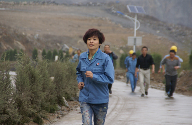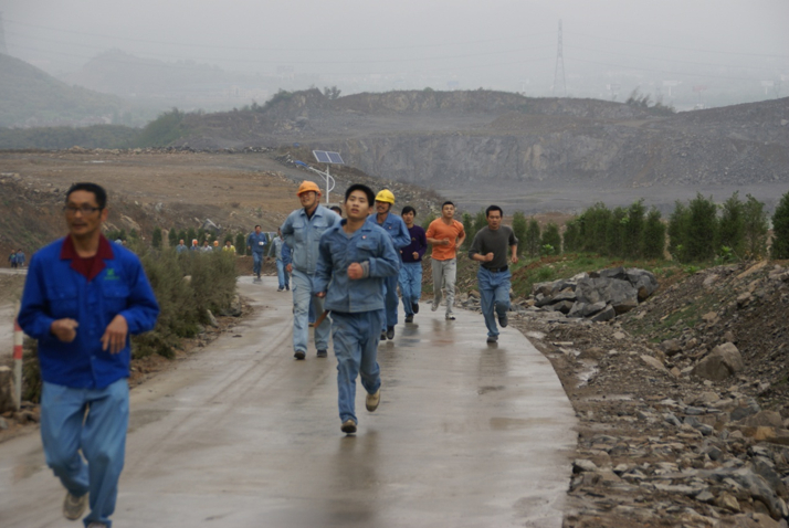 剛開始,隊(duì)伍顯得很擁擠??墒?,100米、200米……隊(duì)伍逐漸拉長,盤山公路上隊(duì)員三個(gè)一群、兩個(gè)一伙。有的隊(duì)員領(lǐng)頭跑在最前面,健步如飛;有的隊(duì)員插著腰,大口大口地喘著氣兒;有的隊(duì)員雙腿像灌了鉛,卻仍是努力向前奔。幾位女隊(duì)員表現(xiàn)很不錯(cuò),頗有“巾幗不讓須眉”之風(fēng)。山道上,加油吶喊聲此起彼伏。經(jīng)過近半小時(shí)的努力,參賽隊(duì)員終于全部跑到終點(diǎn)。工會(huì)委員蔡群榮遞給大伙兒的一杯杯熱葡糖糖,讓我們疲勞頓消。
