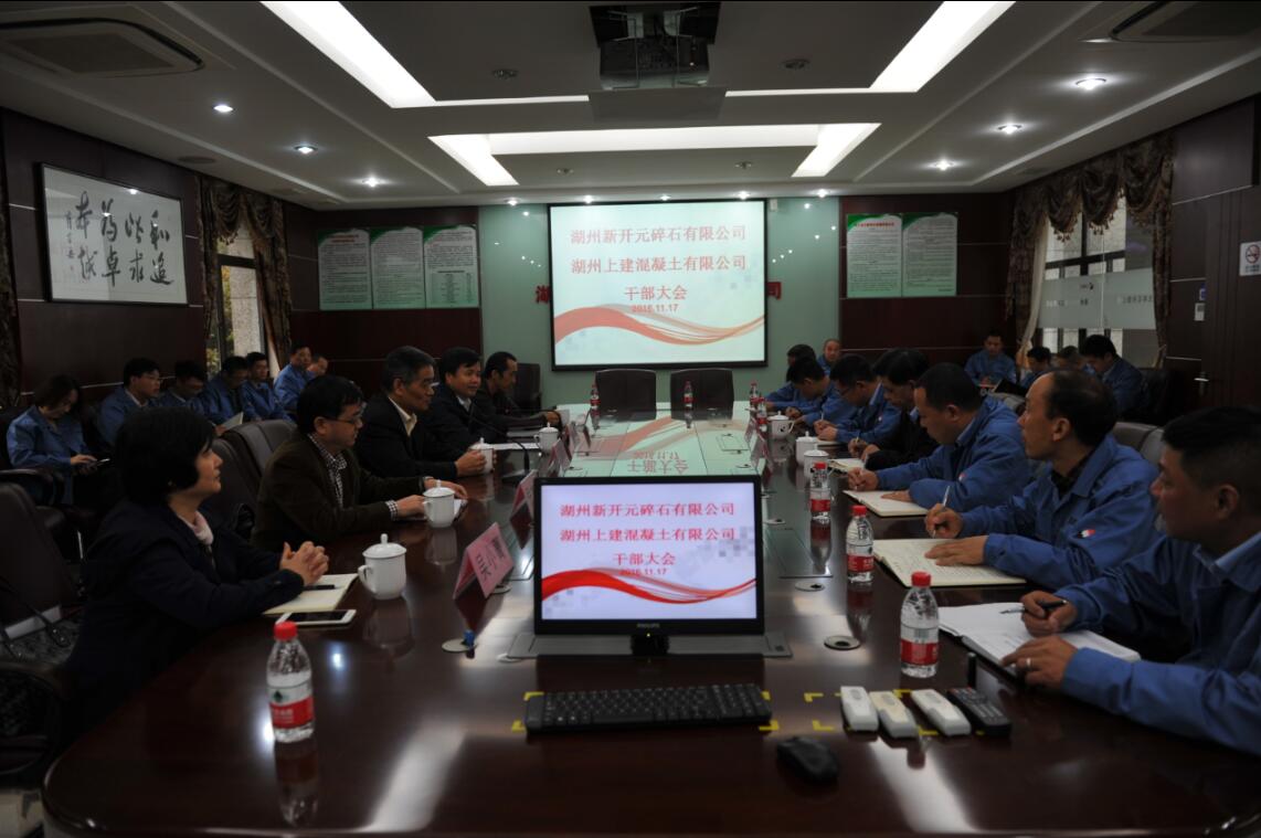 1117日上午,在公司二樓會(huì)議室召開(kāi)湖州新開(kāi)元碎石有限公司和湖州上建混凝土有限公司干部會(huì)議。上海建工材料工程有限公司董事長(zhǎng)王瑞瑤,總經(jīng)理張?jiān)?,黨委副書(shū)記、紀(jì)委書(shū)記倪加進(jìn),副總經(jīng)理王國(guó)鋒,組織科科長(zhǎng)吳小菁等領(lǐng)導(dǎo)參加會(huì)議。